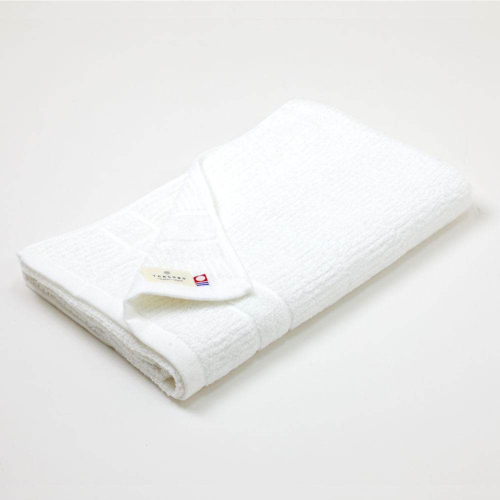 The weave of the willow pattern (a lath weave) creates a passage for air to pass through the lath, which has a radiator effect that makes it easier to dry. By minimizing the pile length, the ground threads (bottom thread, weft thread) are designed to dry easily. TANGO's original quick-drying process was developed in collaboration with KB Tsuzuki. We have succeeded in quickly releasing moisture during spin-drying without compromising the towel's absorbency.