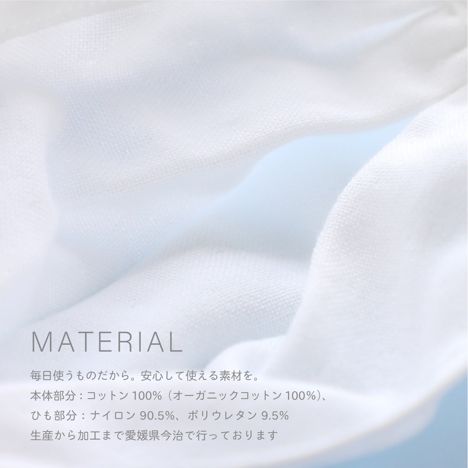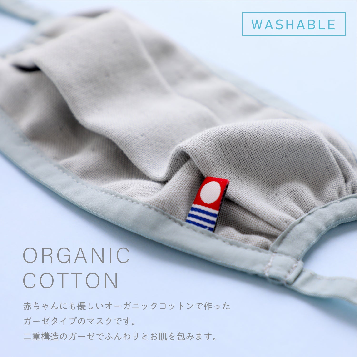 毎日使うものだから。安心して使える素材を。赤ちゃんにも優しいオーガニックコットンで作ったガーゼタイプのマスクです。 二重構造のガーゼでふんわりとお肌を包みます。吸水性に優れ、お肌に優しいマスクです。