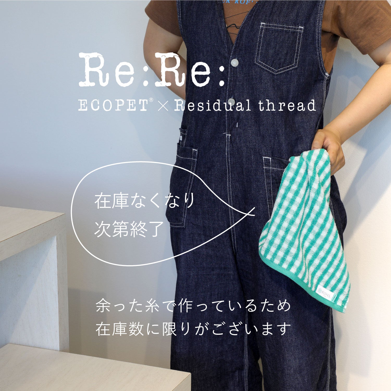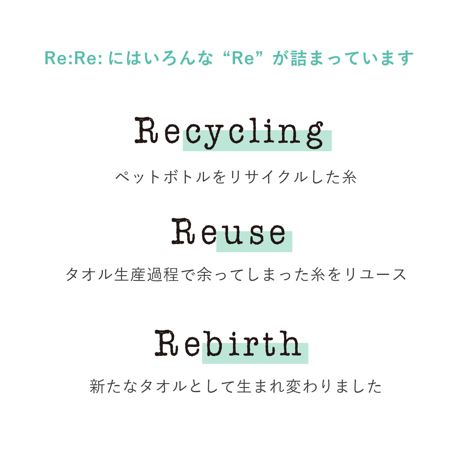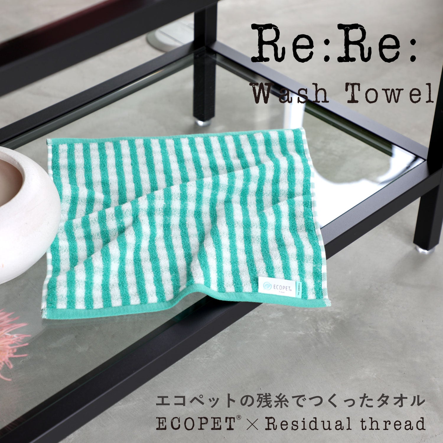 リサイクルでつくった糸“ECOPET®”。 その糸がタオルを作る過程で少量ですが余りました。 その糸を集めて作ったタオル。それがRe:Re:です。