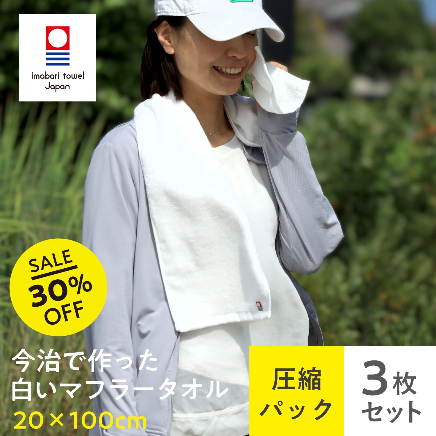 今治でつくった白いマフラータオル〈3枚セット〉20x100cm