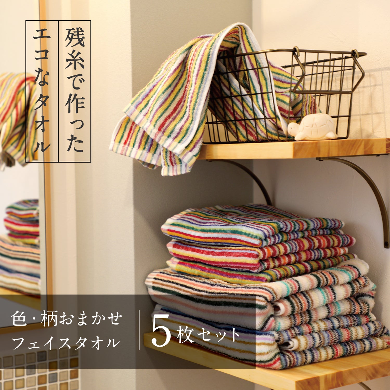残糸で作ったエコなタオルセット フェイスタオル5枚組